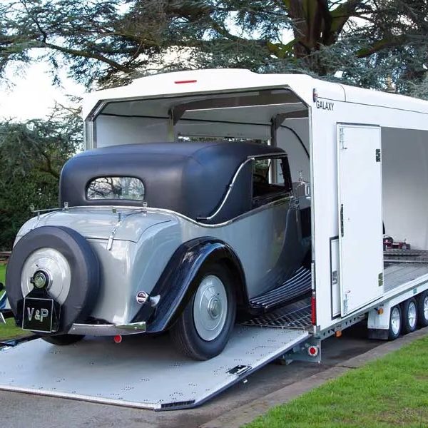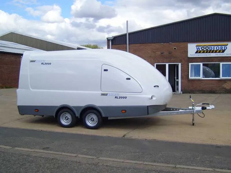 The Woodford RL2000 covered trailer series are high quality covered trailers with a high impact aerodynamic composite body shell. With a well designed bed and beavertail for very low loading, enabling racing and classic vehicles with bodywork close to the ground to carefully load and unload without damage, via two pull out ramps.
